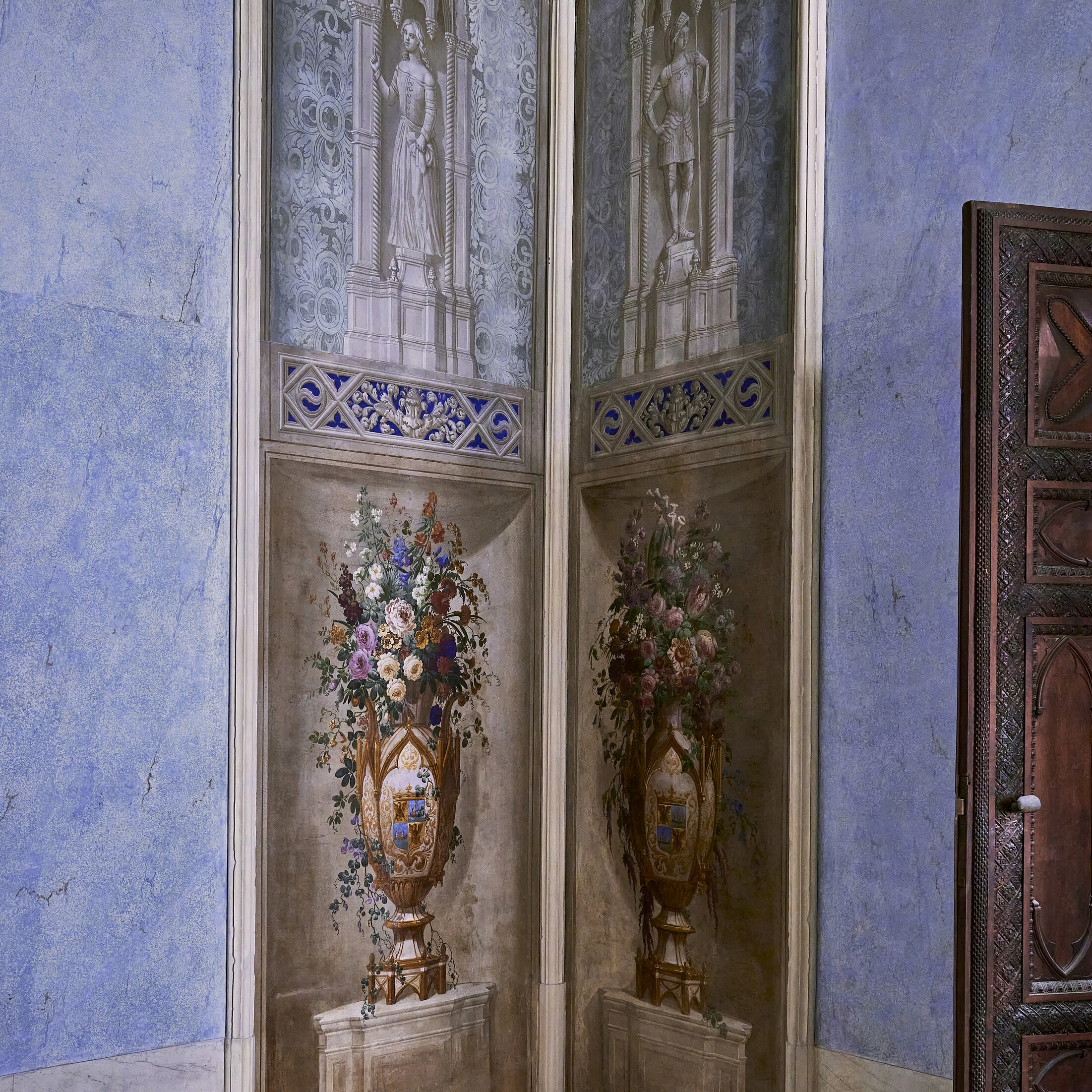 Named for Count Giovannelli, humanist and patron of the arts, the suite reflects the cultivated taste of one of Palazzo's most distinguished inhabitants. Layers of architectural history unfold here: neo-Gothic stained-glass windows, arched corridors, and wooden or brick partitions highlight Venetian craftsmanship, while Pompeian-inspired ornamentation and 1930s finishes evoke patrician villas and classical refinement. Light filters gently through the arched openings, revealing an intimate apartment where history and comfort coexist seamlessly. A marble bathroom provides the final touch of elegance, offering a quiet moment of retreat within this private Venetian residence.