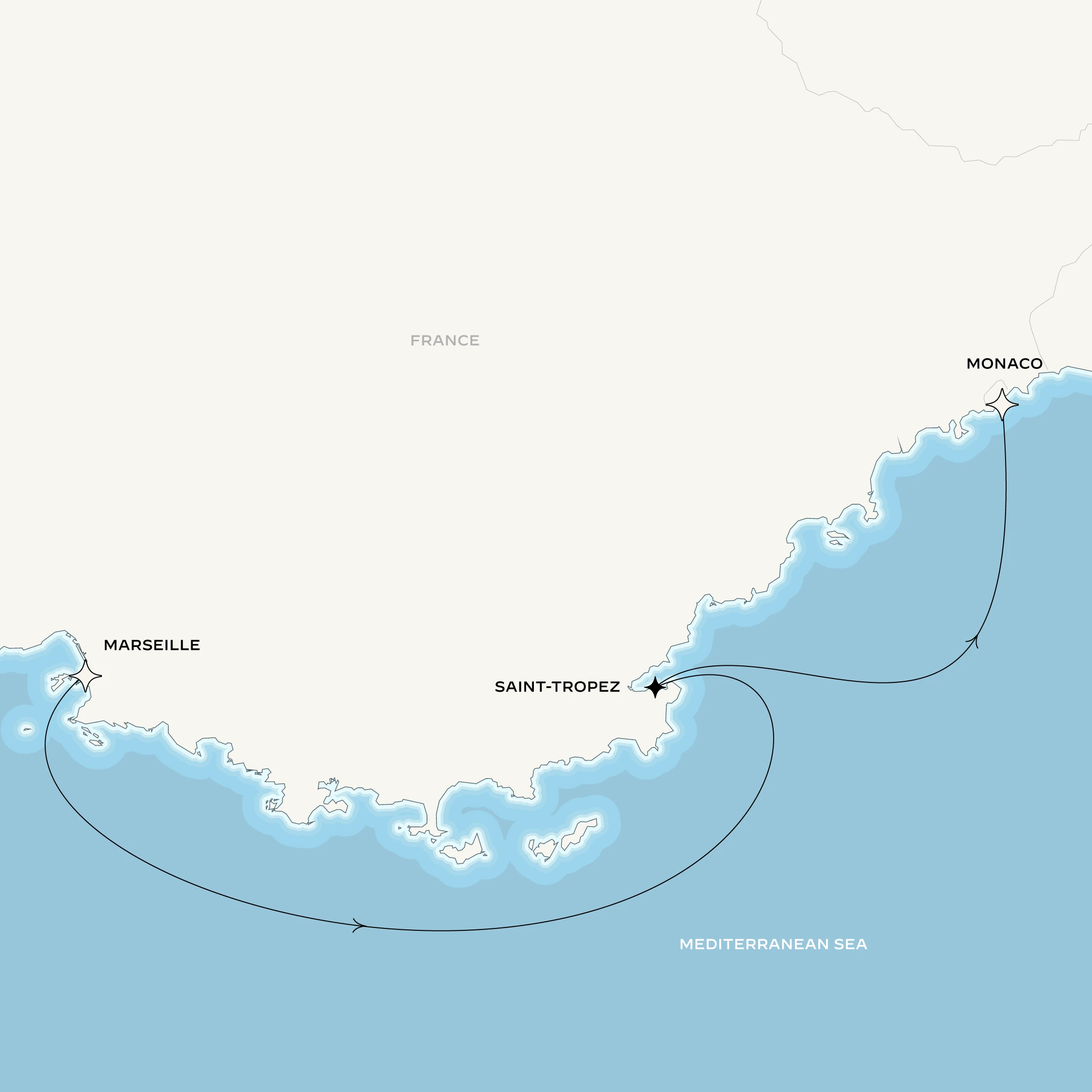 This voyage takes you from a city that is undeniably popular, Marseille, to a destination that is unmistakably royal, Monaco. Departing from Marseille, you'll head to Saint-Tropez. In this legendary village on the French Riviera, elegance is effortless and found everywhere, from its winding streets and sandy beaches to the lively Place des Lices. An iconic white-party in a vineyard sets the scene for unforgettable glamour. The following day, you'll dock at the Monaco harbor, where your journey will come to an end in the shadow of the majestic Prince's Rock.