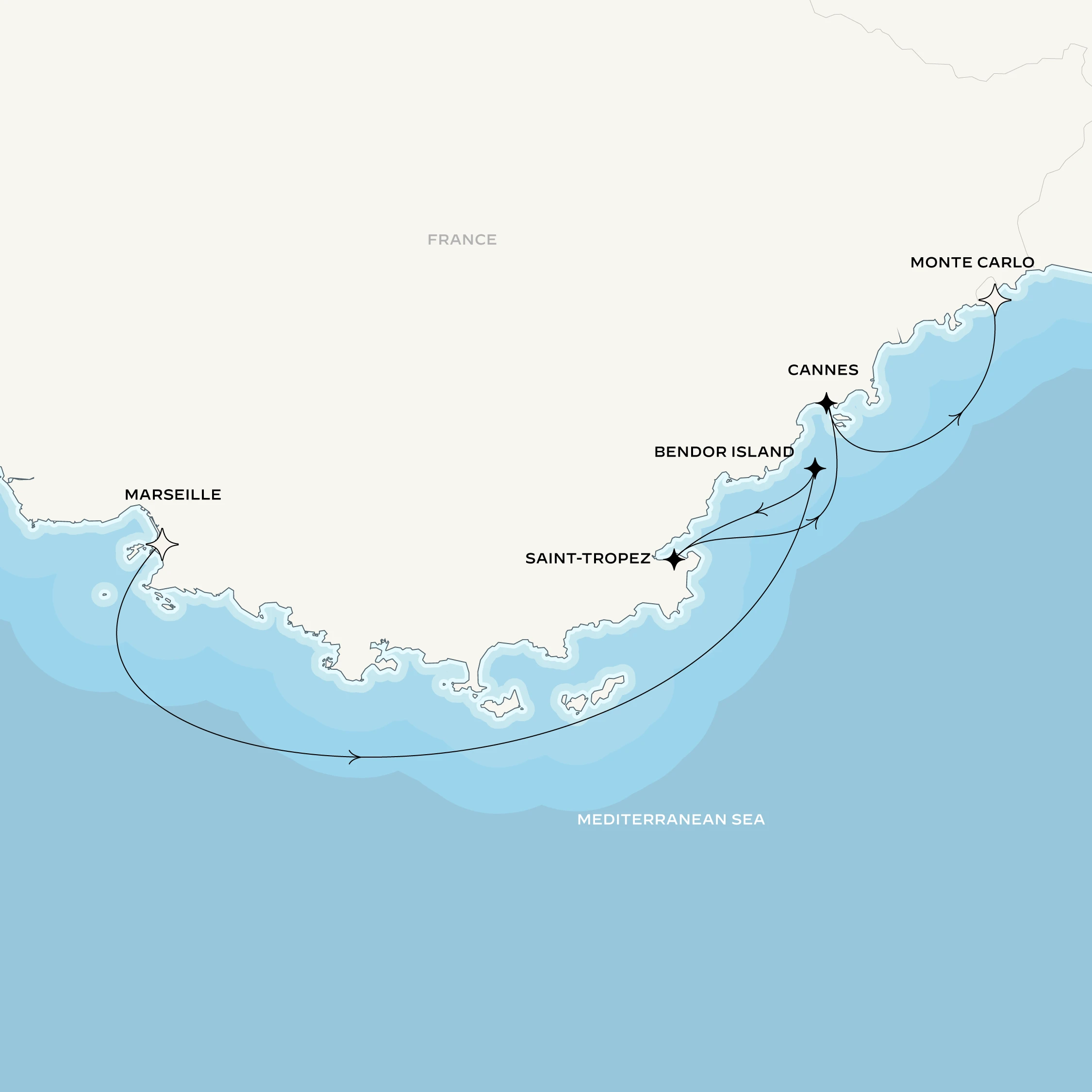 Color, beauty, rarity – the hallmarks of precious gemstones – define the pursuits of this multifaceted sailing from Provence to Monaco. You begin in radiant Marseille, the storied port of stone quays, seafood, and lavender, before venturing to Bendor Island, a private island haven for international travelers. Few places compare to the dreamlike allure of Saint-Tropez and Cannes, where film, fashion, and art de vivre weave an intoxicating trinity. The day reaches its crescendo with an unforgettable culinary odyssey near Cannes at the holiday home of one of France's most iconic houses. Finally, the jewel-box principality of refined extravagance, Monaco, crowns a voyage sparkling with new ways of connecting and coming together.