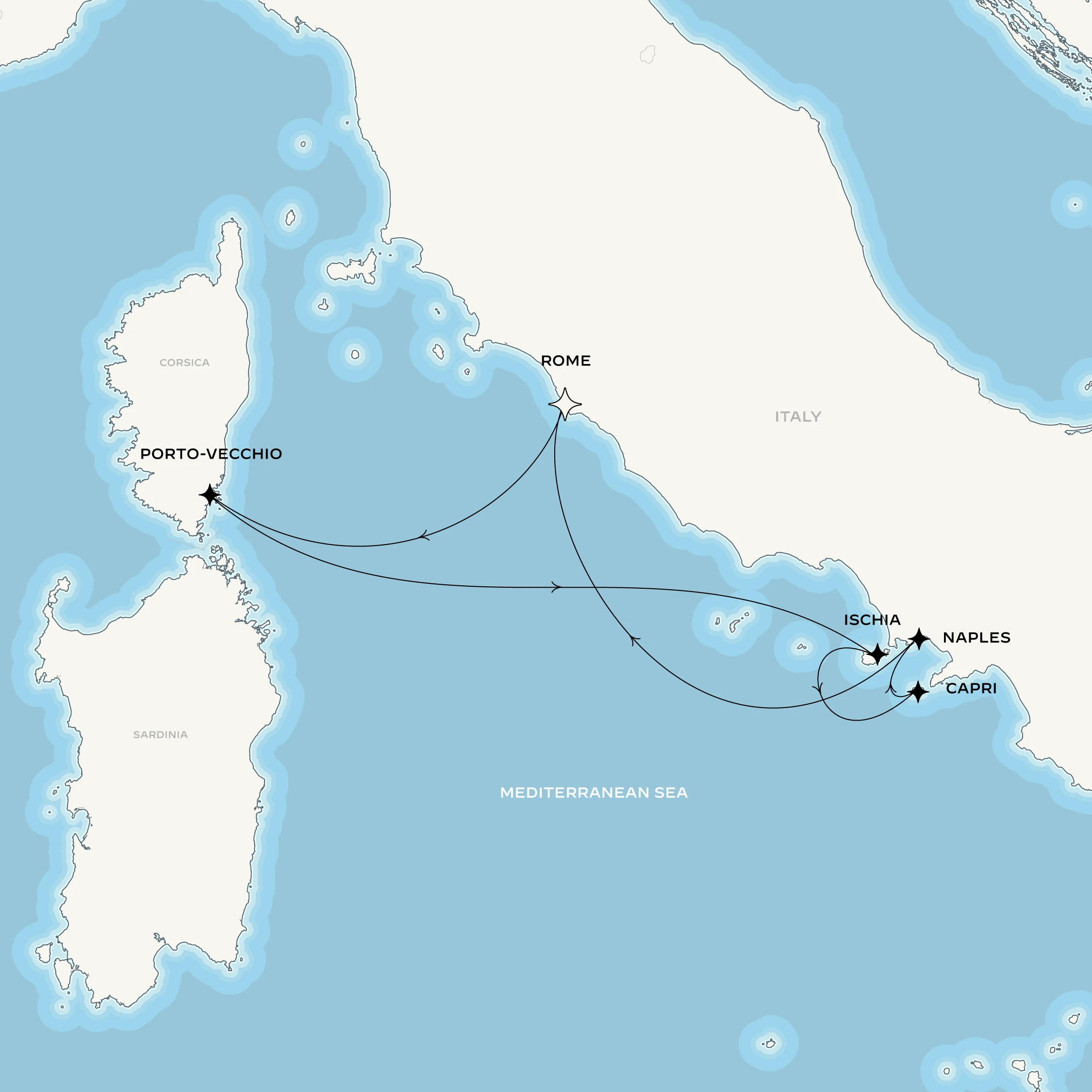 Setting sail from Rome’s maritime gateway, your journey crosses to Corsica’s Porto-Vecchio, an ancient citadel perched above an emerald bay, where rolling countryside laced with vineyards invites leisurely exploration. Enchantment deepens on the voluptuous island of Ischia, famed for its therapeutic thermal springs and lush gardens. Continue to legendary Capri, where you unlock privileged access to an unforgettable evening of private dining in its renowned gardens. Next, Naples erupts into view, a soulful city immortalized in literature and cinema, all beneath the brooding silhouette of Mount Vesuvius.