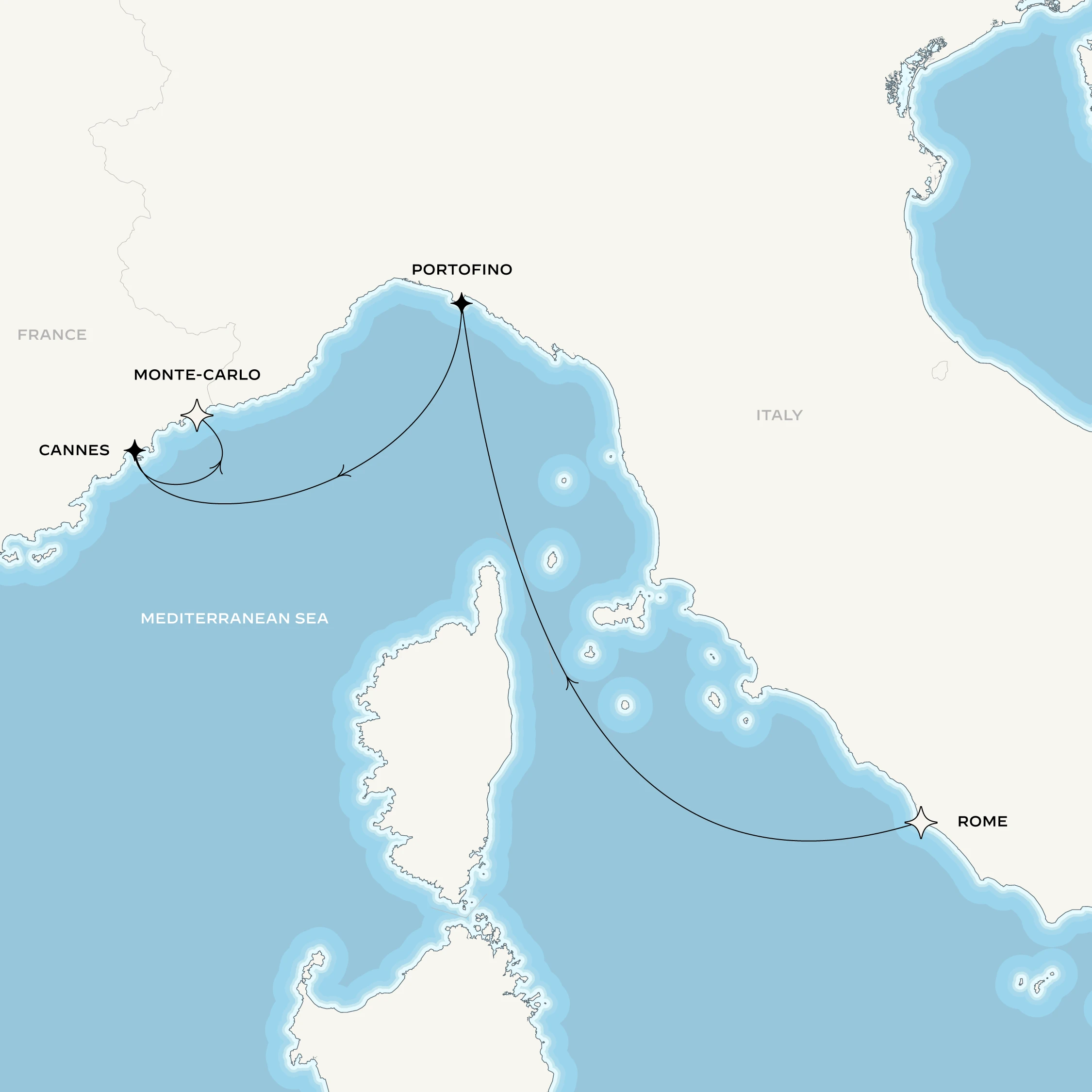 Departing from Civitavecchia, your voyage leads to the enchanting village of Portofino, the epitome of effortless elegance, and stroll its pastel crescent harbor. The following day, you’ll arrive in Cannes, a city renowned for its cinematic glamour and the iconic Croisette. Here, you’ll be treated to an extraordinary soirée evoking the magic of New York’s Studio 54. Finally, the jewel-box principality of refined extravagance, Monaco, crowns a voyage sparkling with new ways of connecting and coming together.